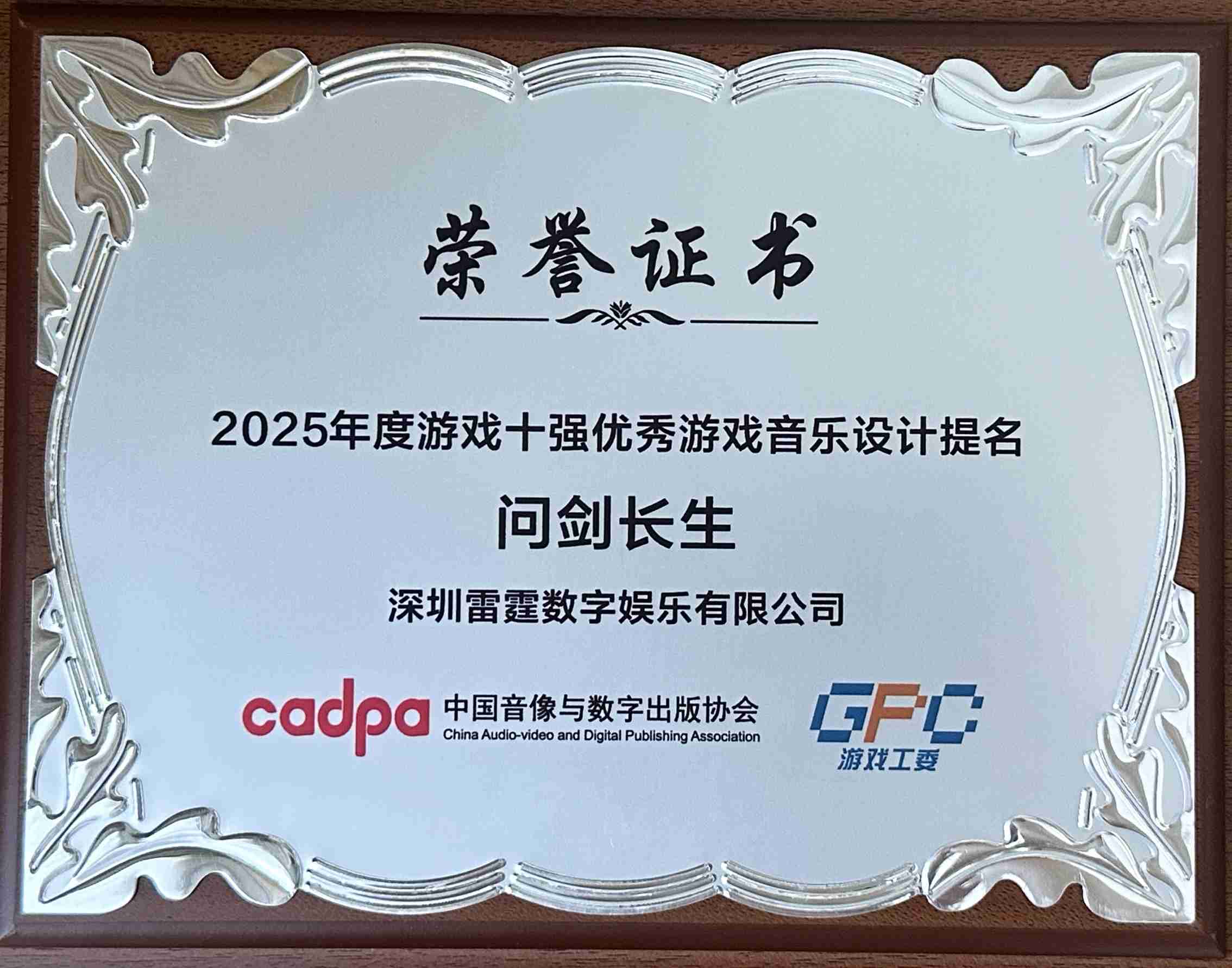 公司坚持走精品化道路,,打造与时代精神相契合、、与海内外大众诉求相契合、、、与创作实践相契合的游戏产品,,,倡导构建具有中华文化特色、、、弘扬中华美学精神的产品理念,,,切实提升游戏文化内涵的传播力影响力。。。。如此次荣获“2025游戏十强年度优秀游戏音乐设计”提名奖的公司自研产品《问剑长生》以音筑境,,,以乐传情,,,,其音乐融合东方传统韵味与现代审美,,,构建独特听觉世界,,运用古筝、、、、笛子、、箜篌等传统乐器与现代管弦乐,,塑造灵动古风仙侠氛围。。