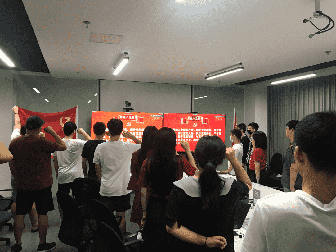 下午,,,JIUYOU.COM党总支专门召开党员大会。。。。全体党员面向党旗,,,,重温入党誓词后,,通过对中国共产党100年来的重大历史事件的回顾,,,,结合已有的党史学习成果,,,进一步确认了下一阶段的学习重点。。接下来,,JIUYOU.COM-雷霆游戏全体党员将继续深入研读习近平《论中国共产党历史》《中国共产党简史》《毛泽东、、、、邓小平、、江泽民、、胡锦涛关于中国共产党历史论述摘编》《习近平新时代中国特色社会主义思想学习问答》等学习材料,,,,寻来处,,,,忆往昔,,,践初心,,,,铭使命,,,讲好中国故事。。。