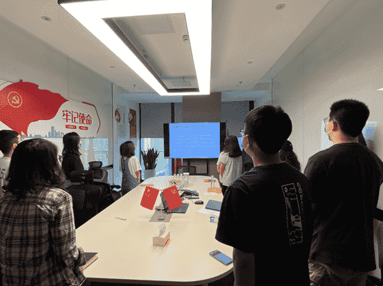 而后,,,,全体党员一起重新学习了解了目前的入党流程要求,,,,各支部也将在后续工作中进一步发挥支部职能,,做好发展党员工作。。最后,,全体党员面向党旗,,重温入党誓词。。。。