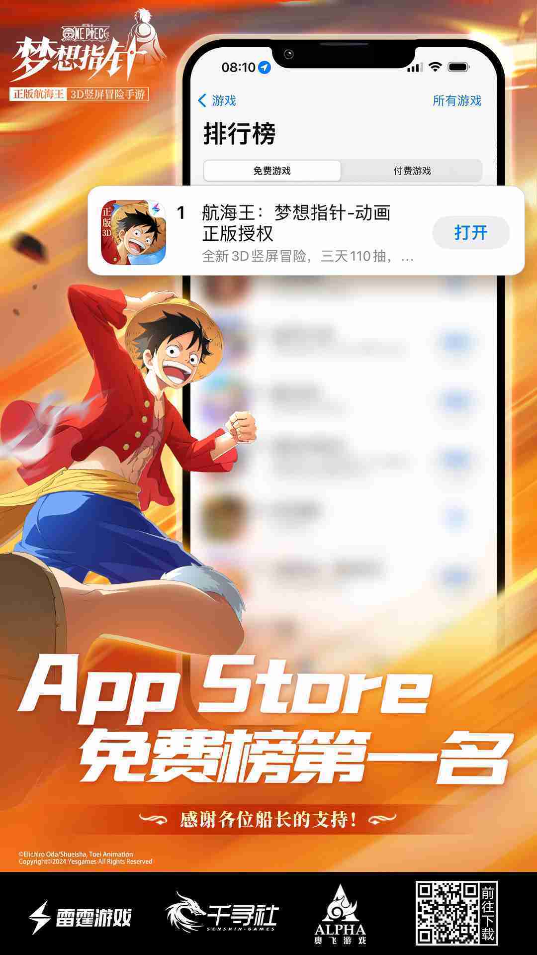 《航海王::梦想指针》登顶App Store免费榜,,,公测福利汇总!!