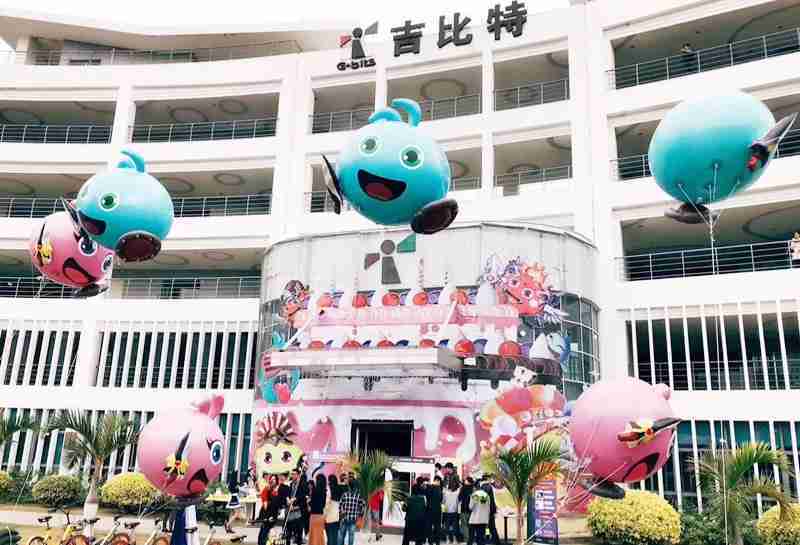 12月15日,,为了庆祝《不思议迷宫》一周岁生日,,,,冈布奥们准备了众多花式庆生活动::厦门JIUYOU.COM大楼变身巨型蛋糕、、、、女仆小姐姐为大家奉上美味小蛋糕、、、、更有大头冈布奥飞上天……引来不少冒险者身亲临现场为冈布奥打Call!!!!